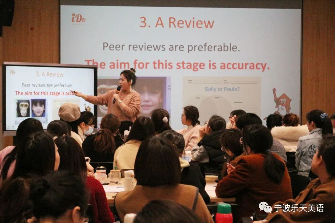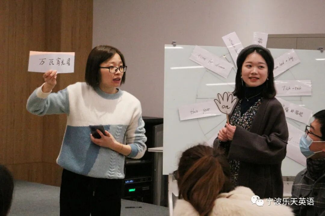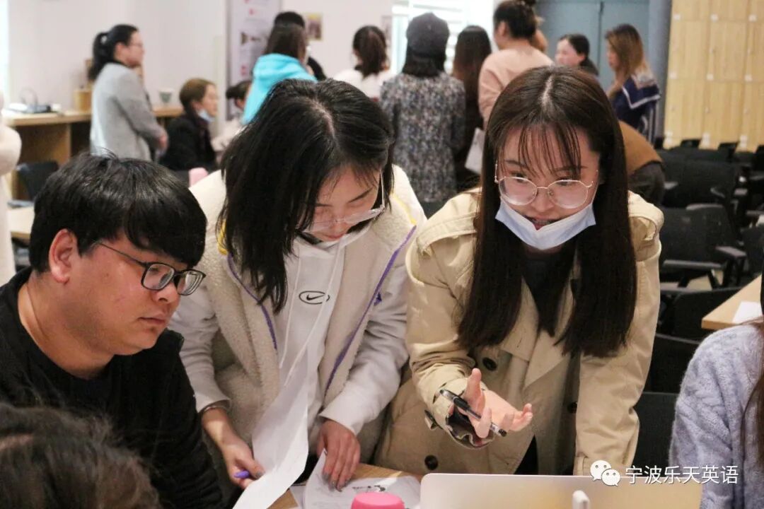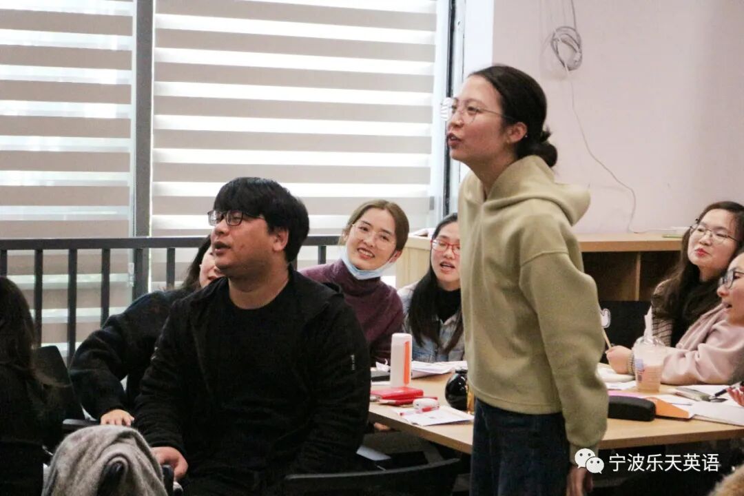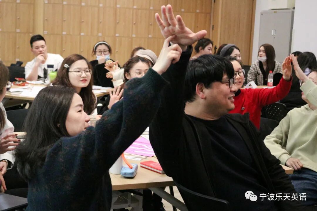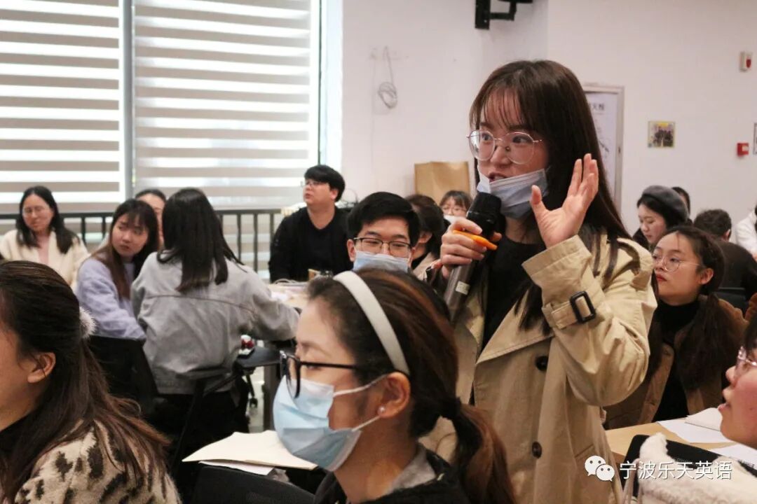 Grace和Coco老师带来的“全英文语法教学示范课”,打开了大家的“视界”。原来语法课还可以这样上,吸引“学生们”踊跃参与课堂。